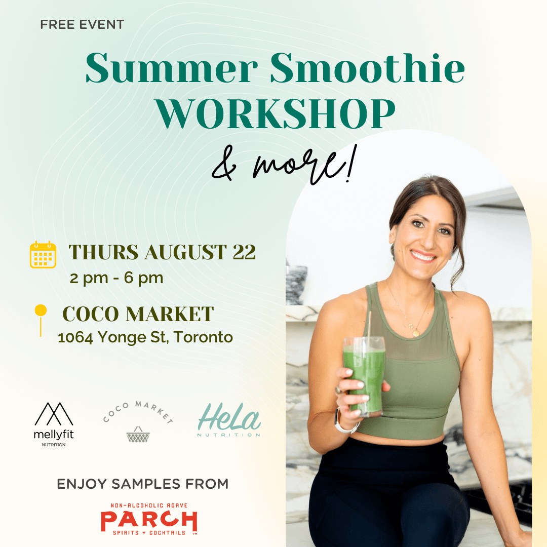 We’re excited to invite you to our Summer Smoothie Workshop with Holistic Nutritionist, Melissa Cosentino, on Thursday August 22nd. Come join us on the patio for a refreshing experience and take home some new ideas for your smoothie-making adventures. There will be lots going on that day, here’s what you can look forward to: